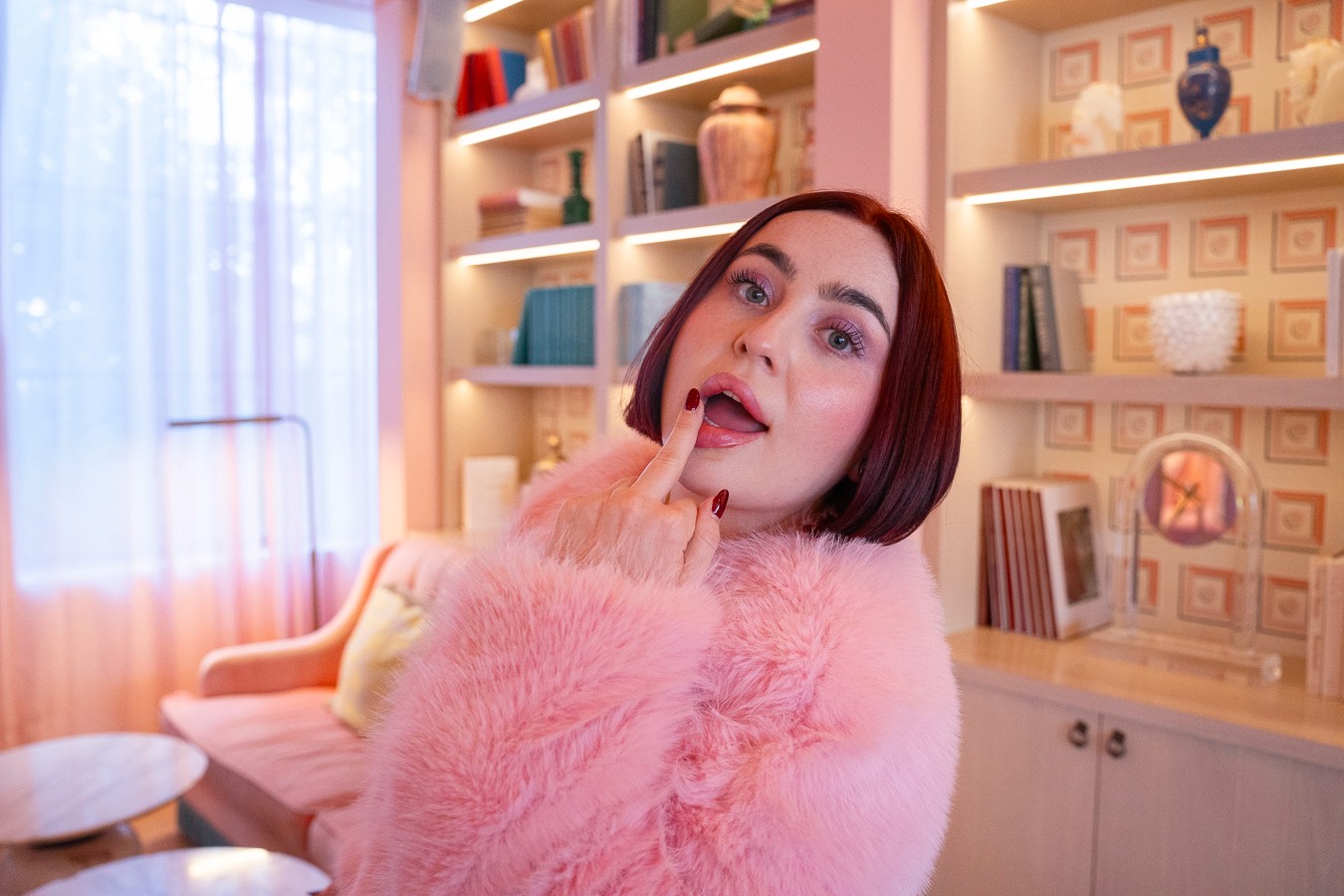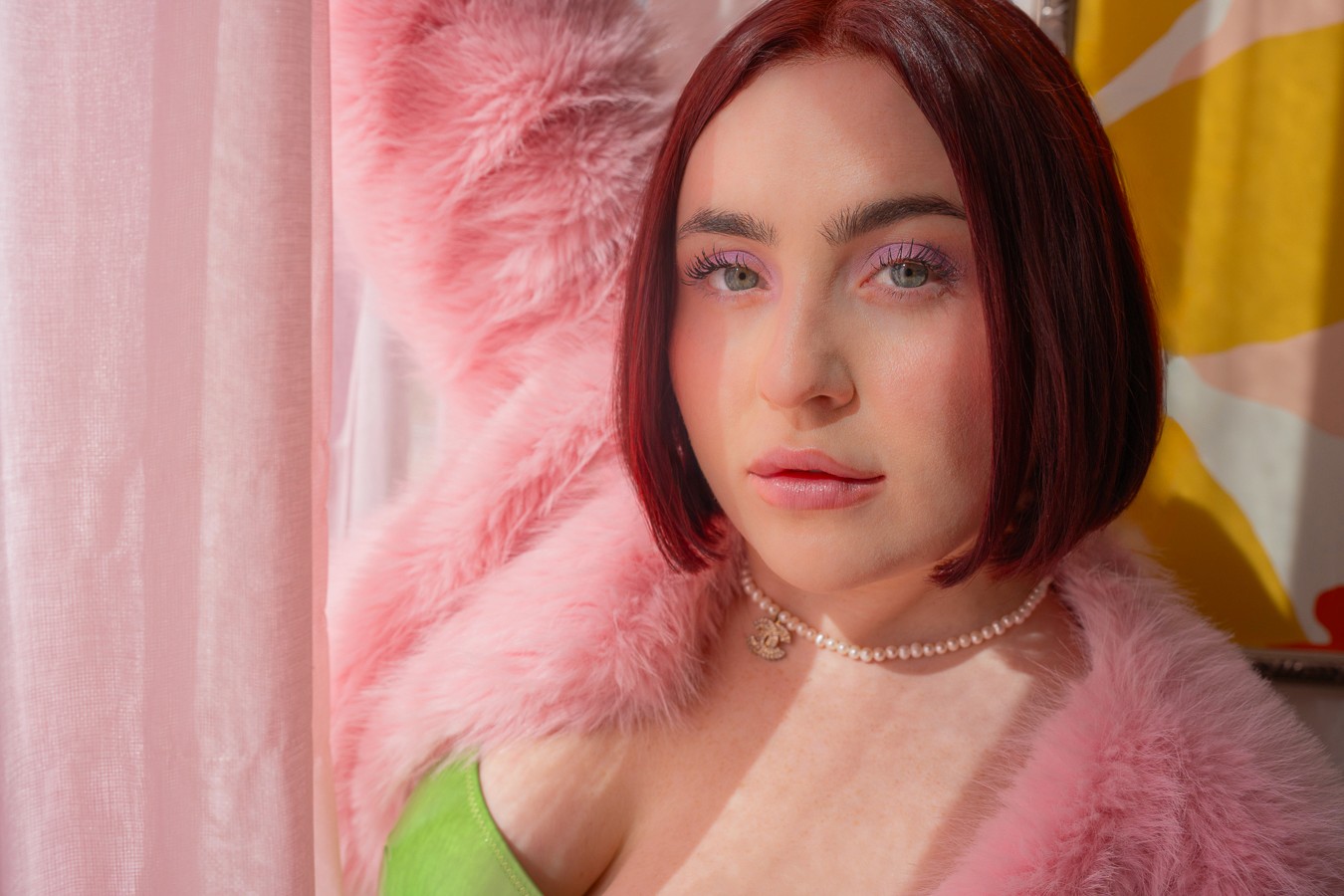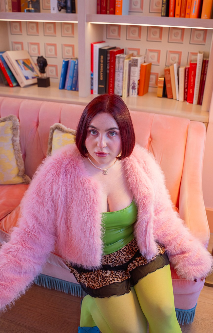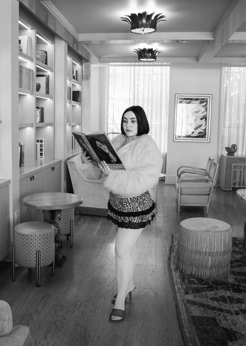 Our approach began with defining the emotional tone of her world: playful but intentional. We chose an iconic Miami location known for its pastel interiors and vintage Art Deco undertones. The space served as the perfect stage naturally amplifying the visuals. Palm Noir provided full creative direction, styling, and photography.